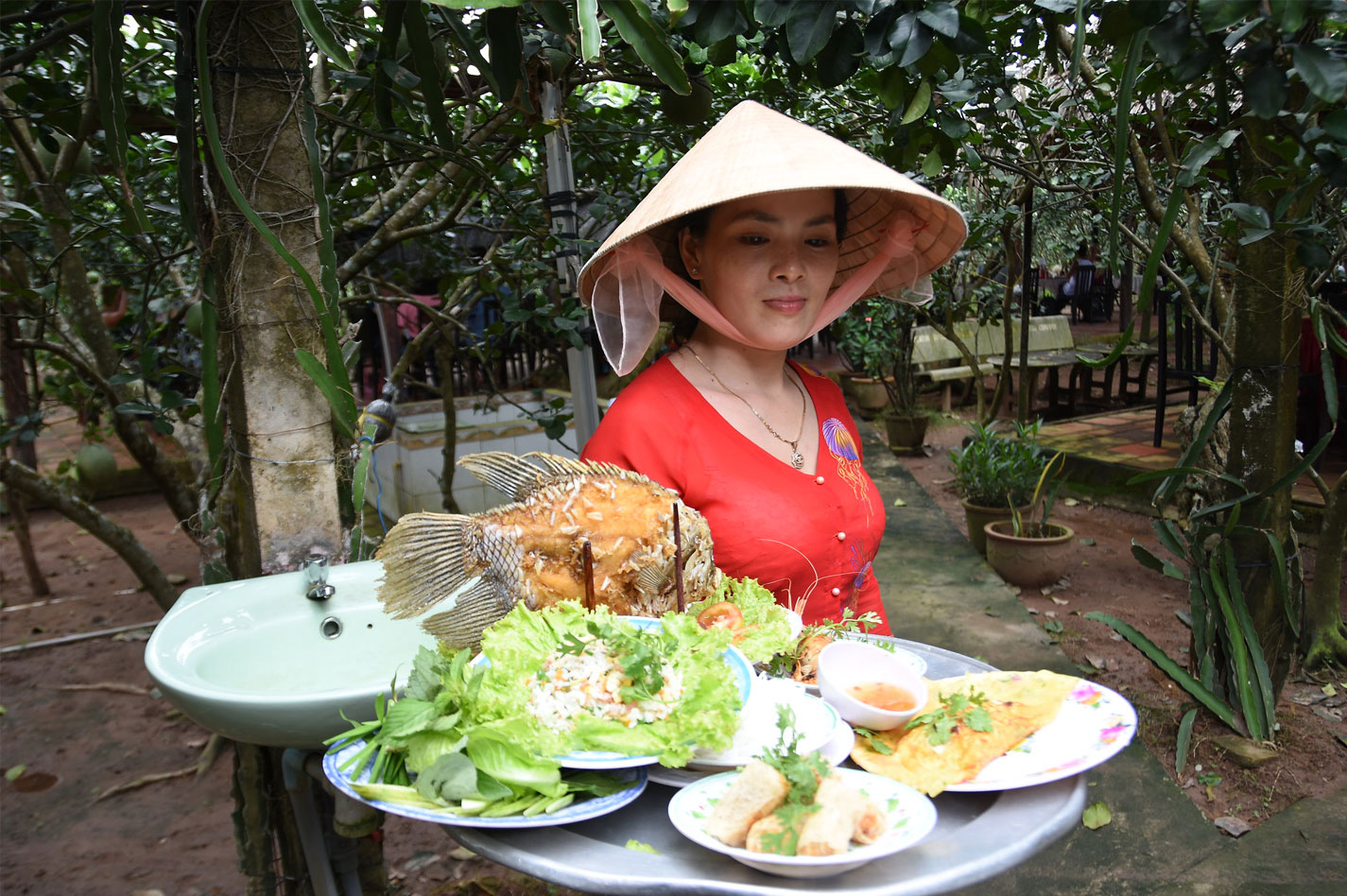 After that, let see how the locals pick fruits on their farm and enjoy your achievements when listening to the traditional music of the locals here. In addition, you will have an opportunity to take a horse cart along the small path in the village to get to Ben Truc Orchard. Enjoy tea with honey and coconut candy here before we back to the dock and enjoy lunch at the local restaurant.